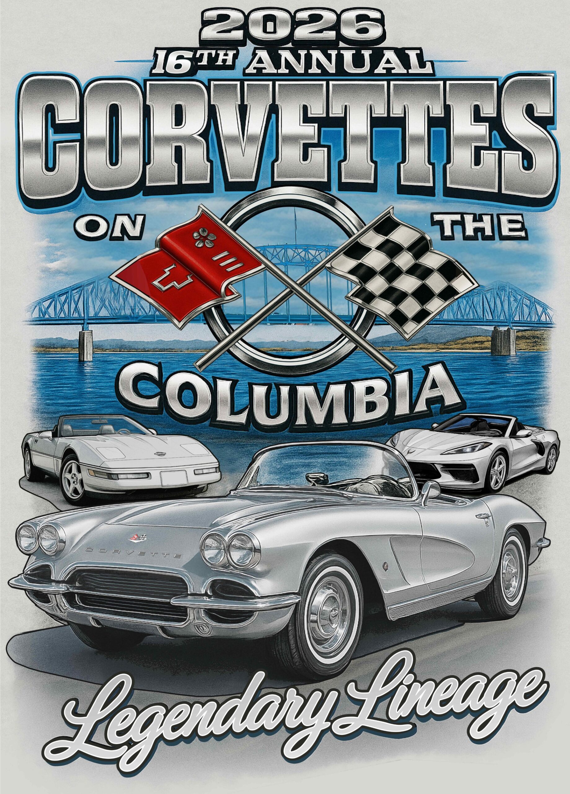 As the year comes to a close, we wanted to reach out with Corvettes on the Columbia News – as well as introduce our 2026 Artwork for our brochures and Shirts. Congratulations to John from Grants Pass, OR for such a fine Corvette, our 2025 Best of Show!